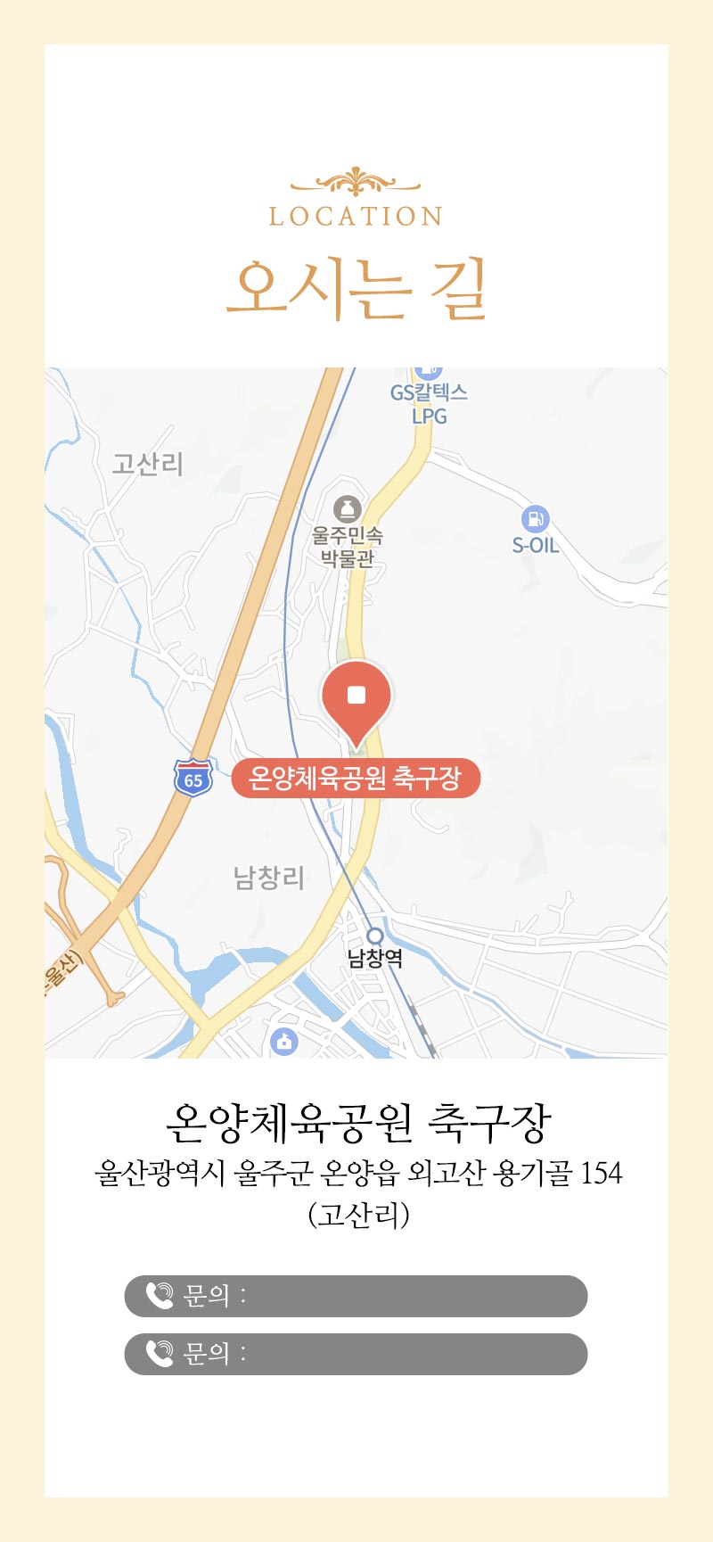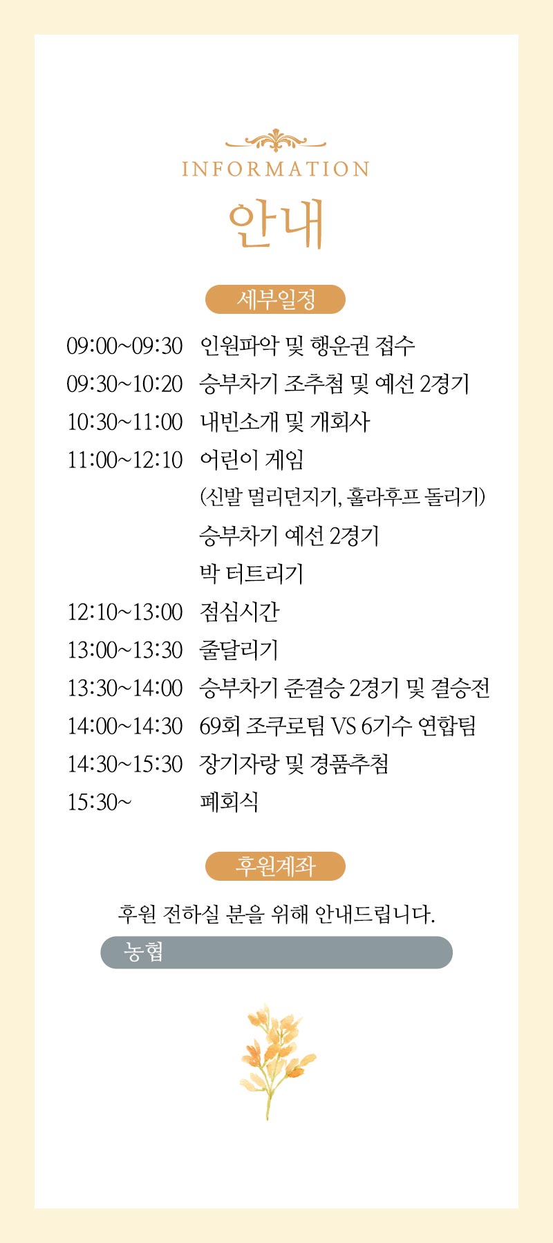 체육대회 안내사항을 신속하게 전달할 수 있도록 대표 연락처를 명시했습니다.