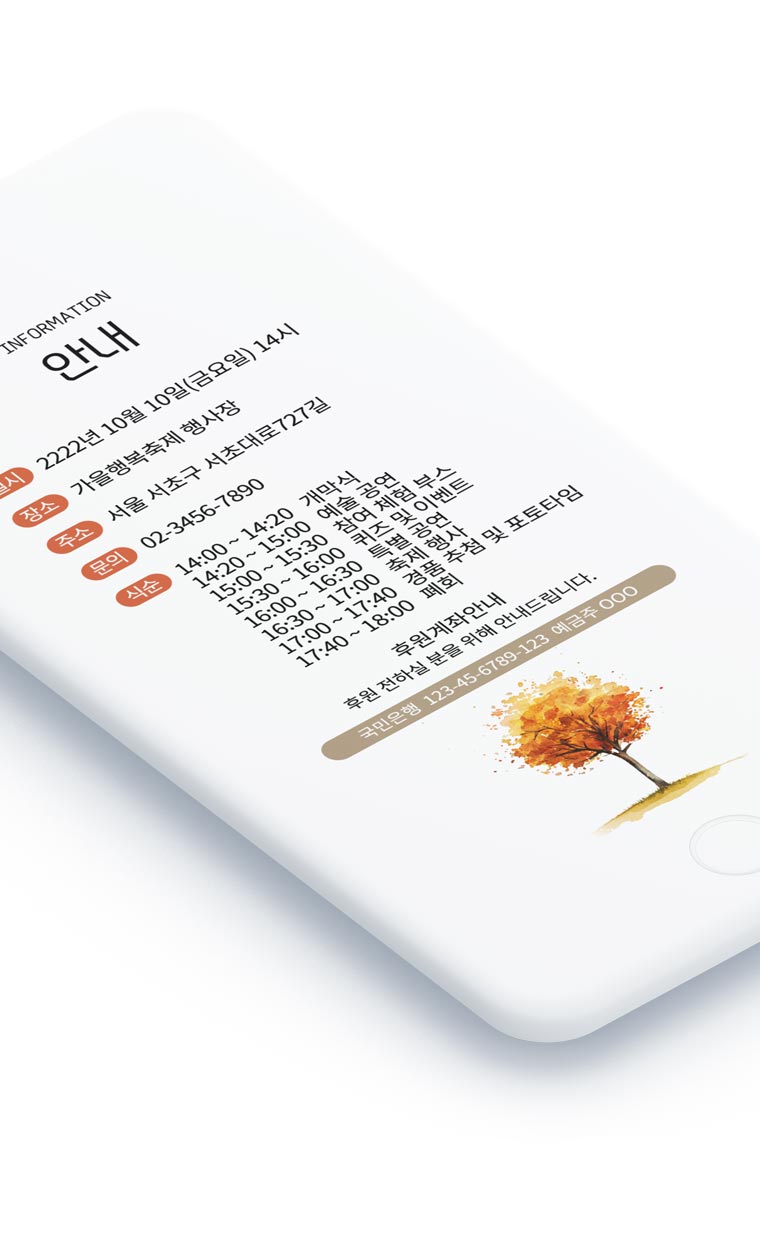 가을 모바일초대장 축제 전도 이벤트 홍보 행사 초청장 디자인덕 : 디자인덕