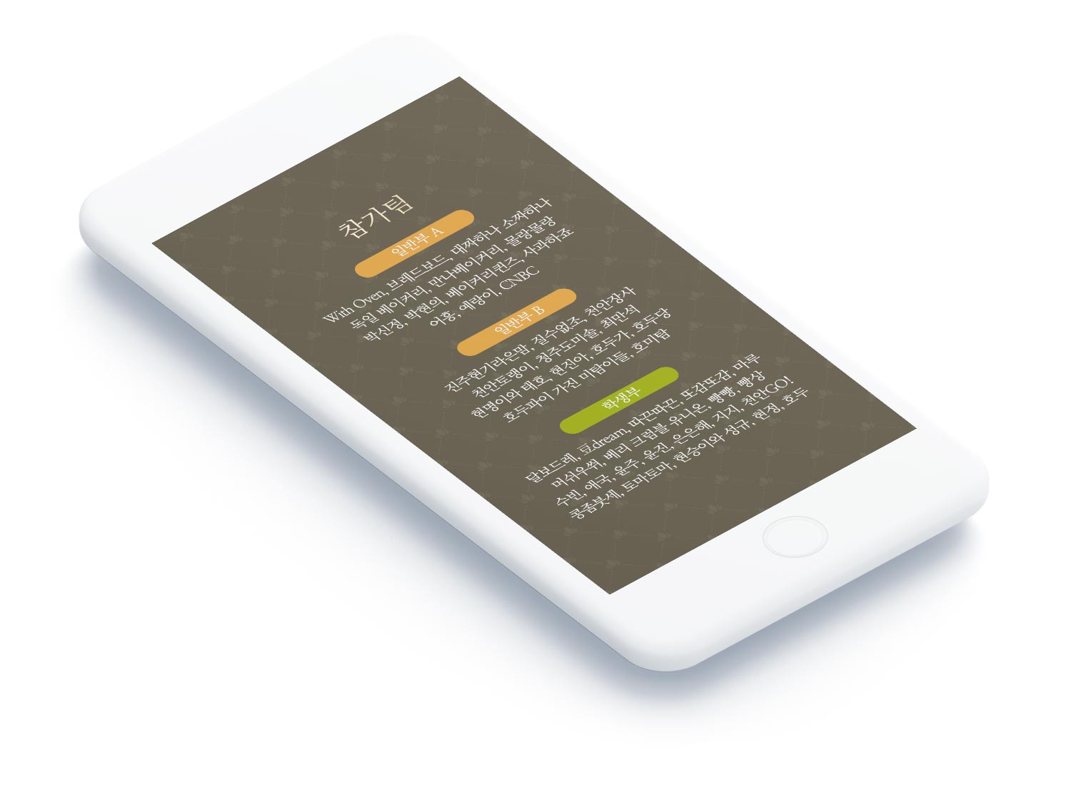 - 참가팀 분야별 참가팀 상세 안내