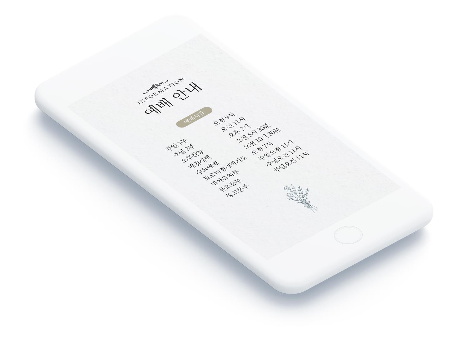 세련된 플로럴 디자인으로 완성한 교회행사 초대장