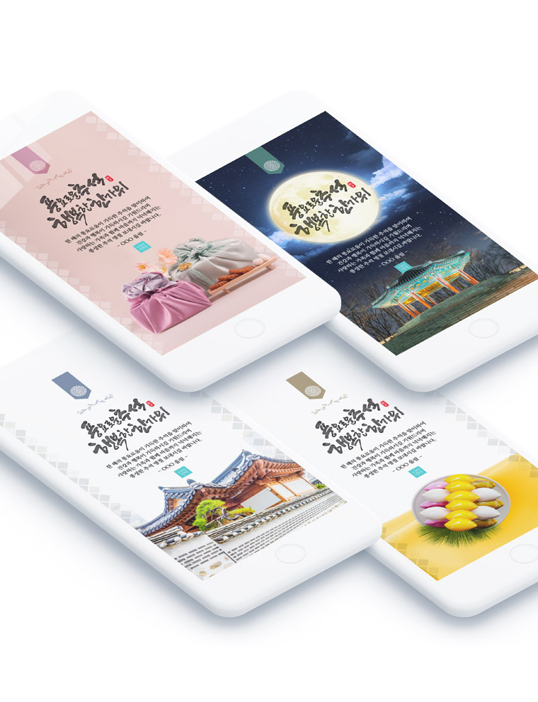 한가위 추석 감사 인사 모바일 카드 1추석 2보름달 3전통 4송편 : 디자인덕