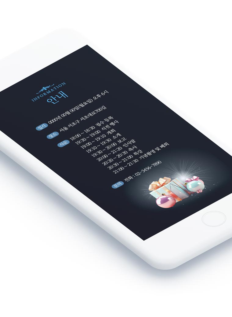 특별한 송년의 밤을 준비하신다면, 참석자들에게 첫인상부터 인상적인 모바일초대장으로 초대해보세요.
