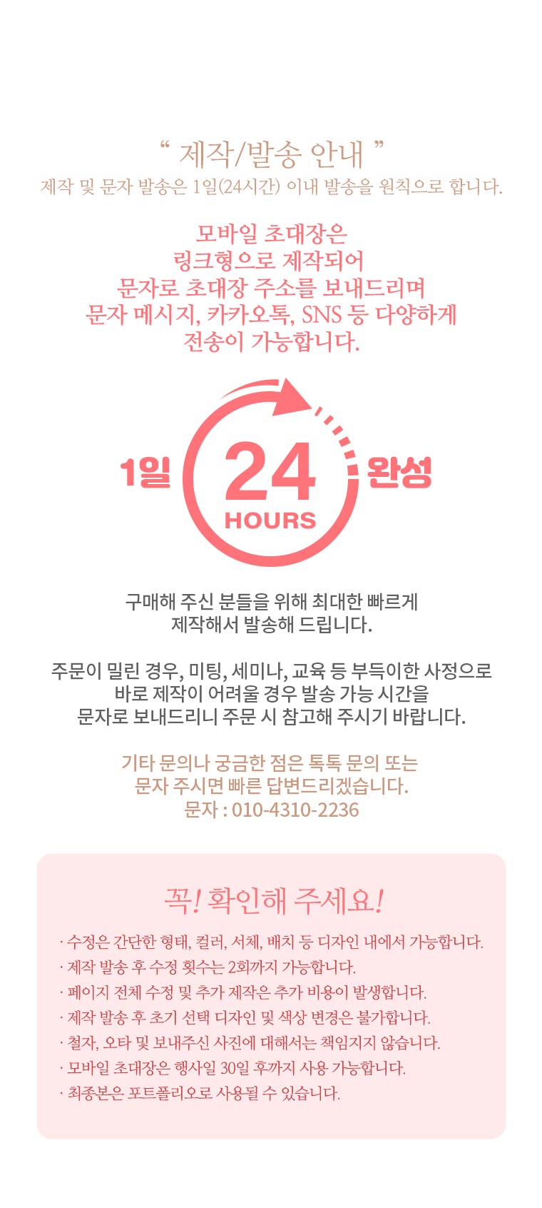 결제 후 1일 이내 제작 완료되며, 카카오톡이나 문자로 간편하게 전송 가능합니다.