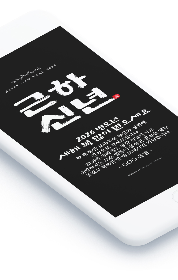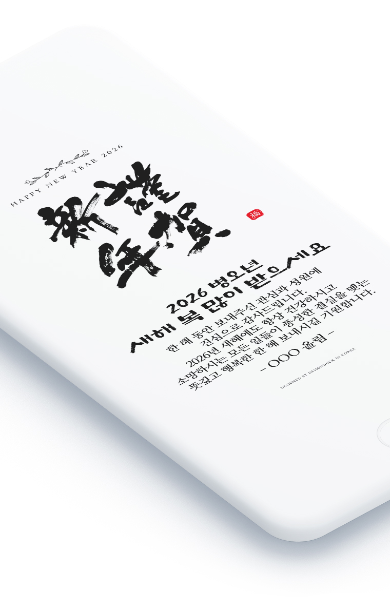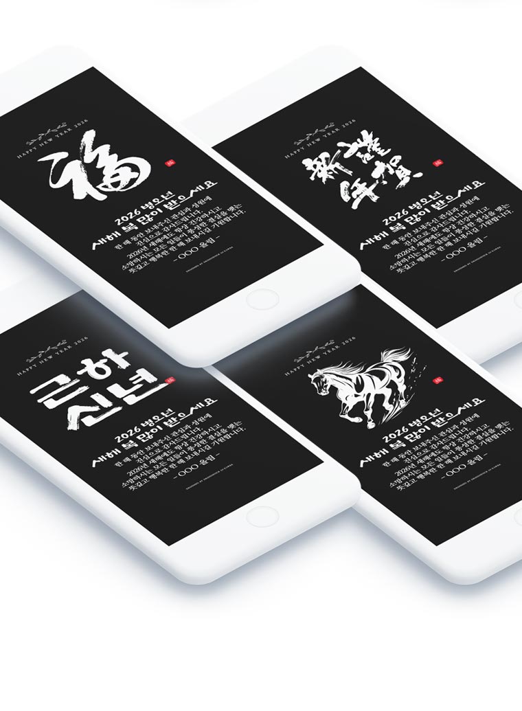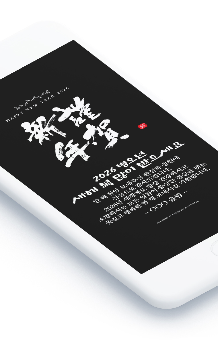 2026년 병오년을 맞아 특별히 제작된 모바일 연하장은 전통 서예의 아름다움과 현대적 감각이 조화를 이룹니다.