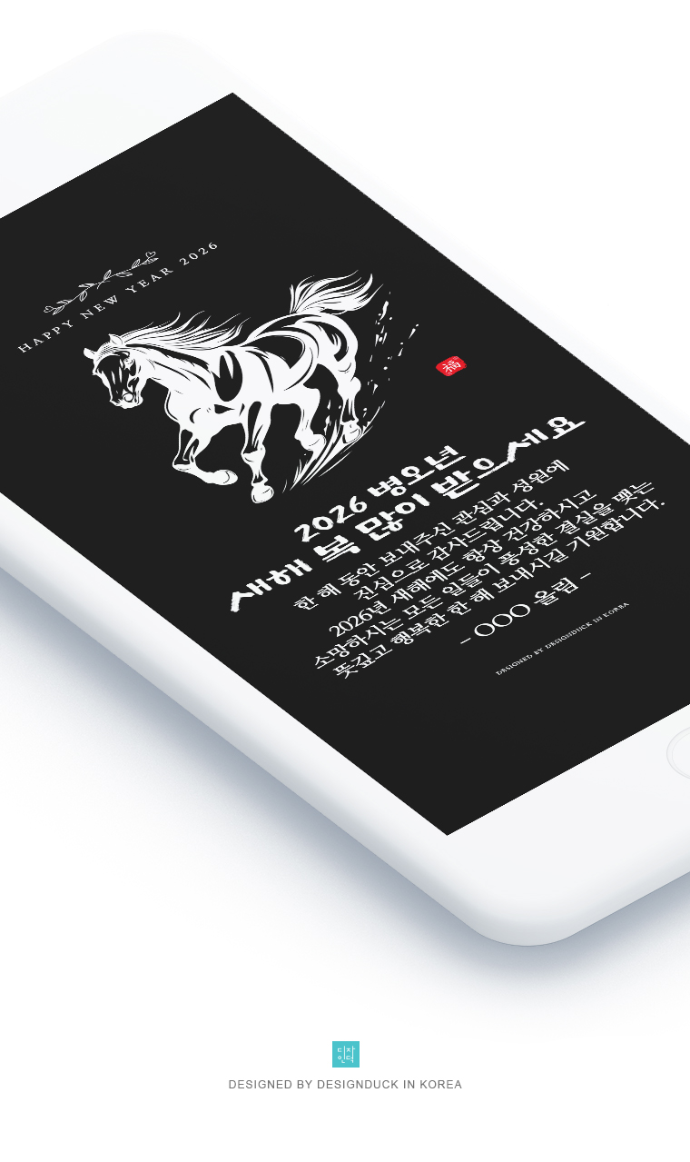 2026년 병오년(丙午年)은 붉은 말의 해로, 역동적인 에너지와 열정이 가득한 한 해가 될 것으로 기대됩니다. 이런 의미 있는 새해를 맞아 특별한 모바일 연하장으로 진심 어린 인사를 전해보세요.