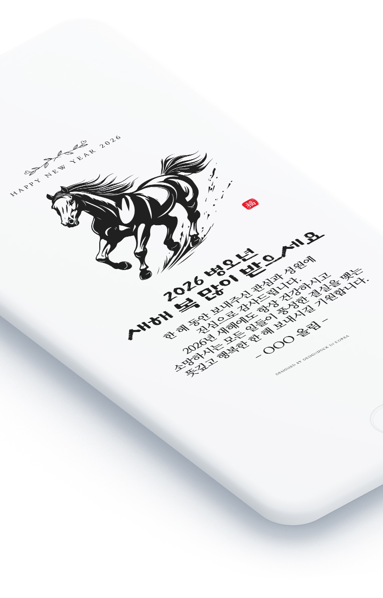 2026년 병오년, 붉은 말처럼 힘차게 달려갈 새해를 맞아, 고급스럽고 세련된 모바일 연하장으로 특별한 시작을 준비하세요. 전통의 아름다움과 현대의 편리함이 만난 완벽한 새해 인사, 지금 바로 시작하실 수 있습니다.