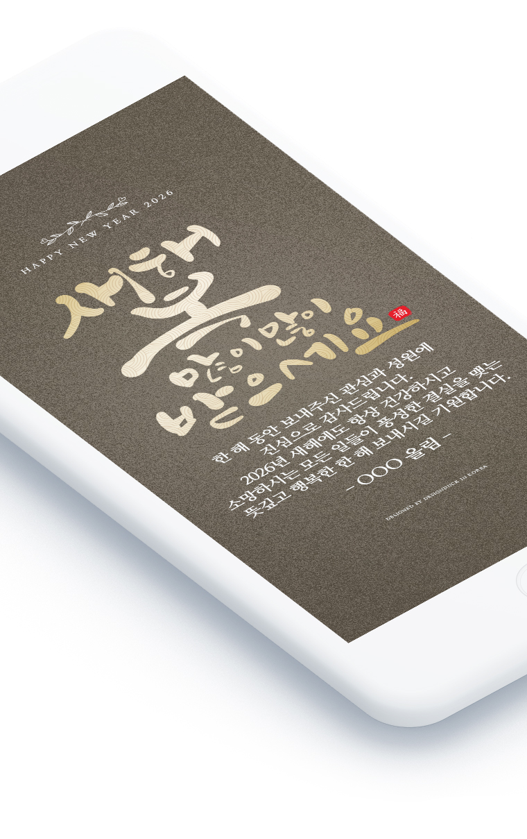 새해 가장 먼저 인사를 전하고 싶으신가요? 연말에 여러 분들께 한꺼번에 보내야 하나요? 주문 즉시 제작 시스템으로 언제든 필요한 때 바로 사용하실 수 있습니다.