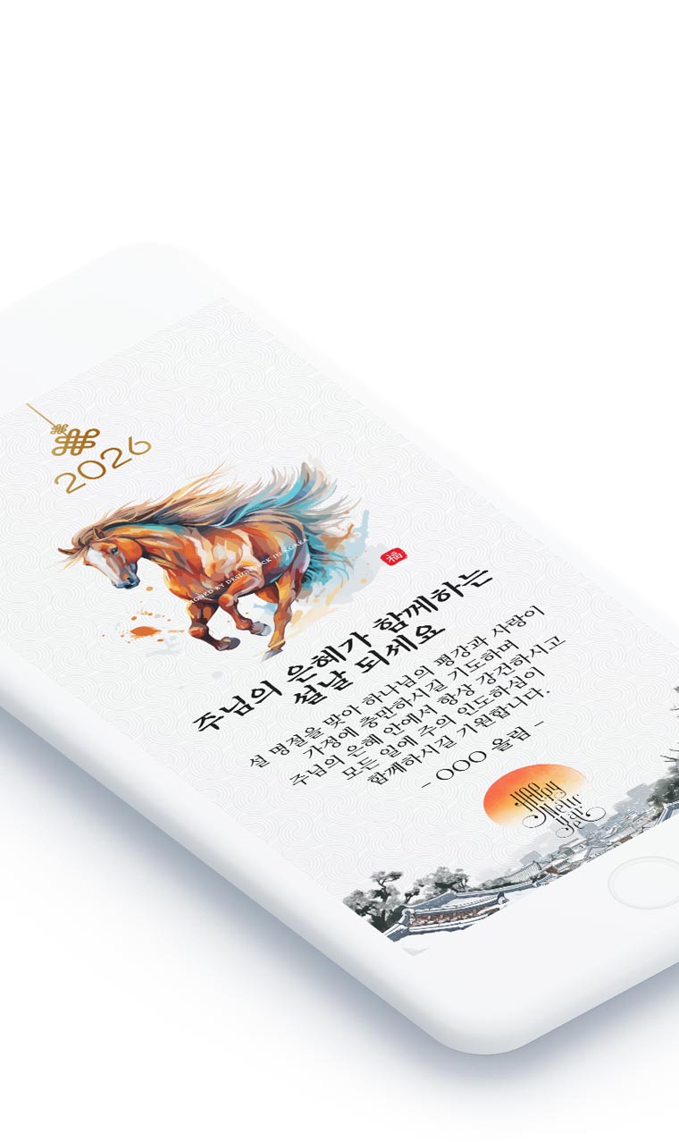 2026년 병오년 설날 명절을 맞아 교회 성도님들과 소중한 분들께 따뜻한 인사를 전하고 싶으신가요? 이제 카카오톡이나 문자로 간편하게 세련되고 고급스러운 설날 인사를 나눌 수 있습니다.