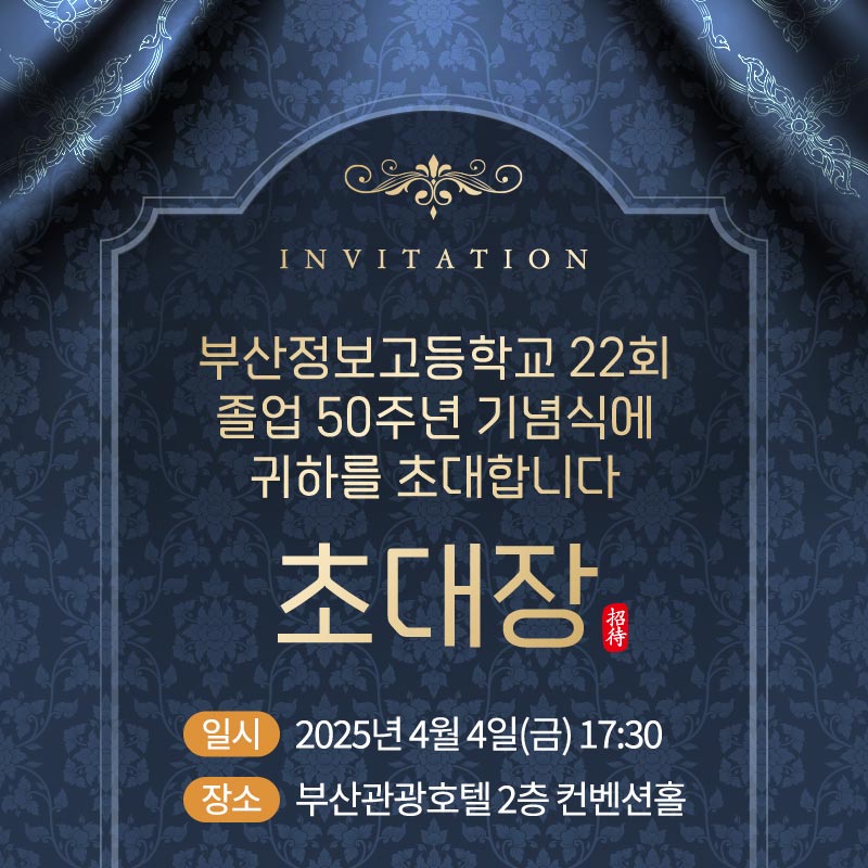 졸업 50주년 기념 행사를 앞두고 요청하신 건으로, 격식 있는 자리인 만큼 품격 있는 디자인을 함께 고민하며 작업했습니다.