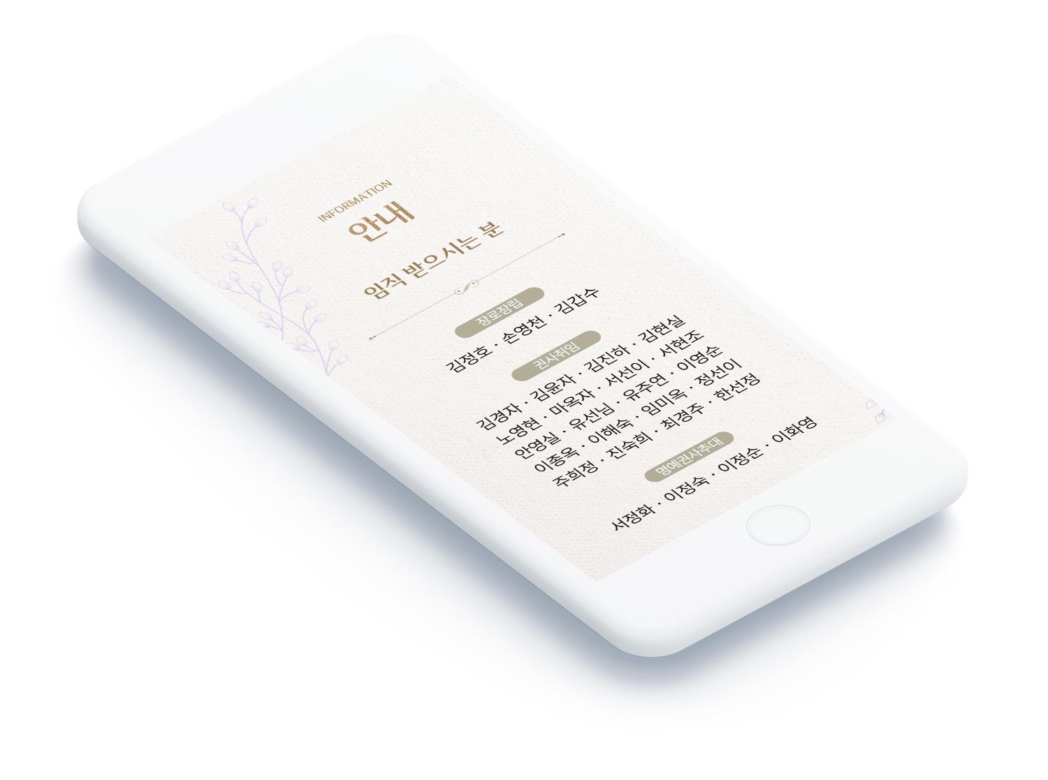 - 인사말(Message) : 정성 어린 초청 문구로 참석자에게 따뜻한 마음을 전달