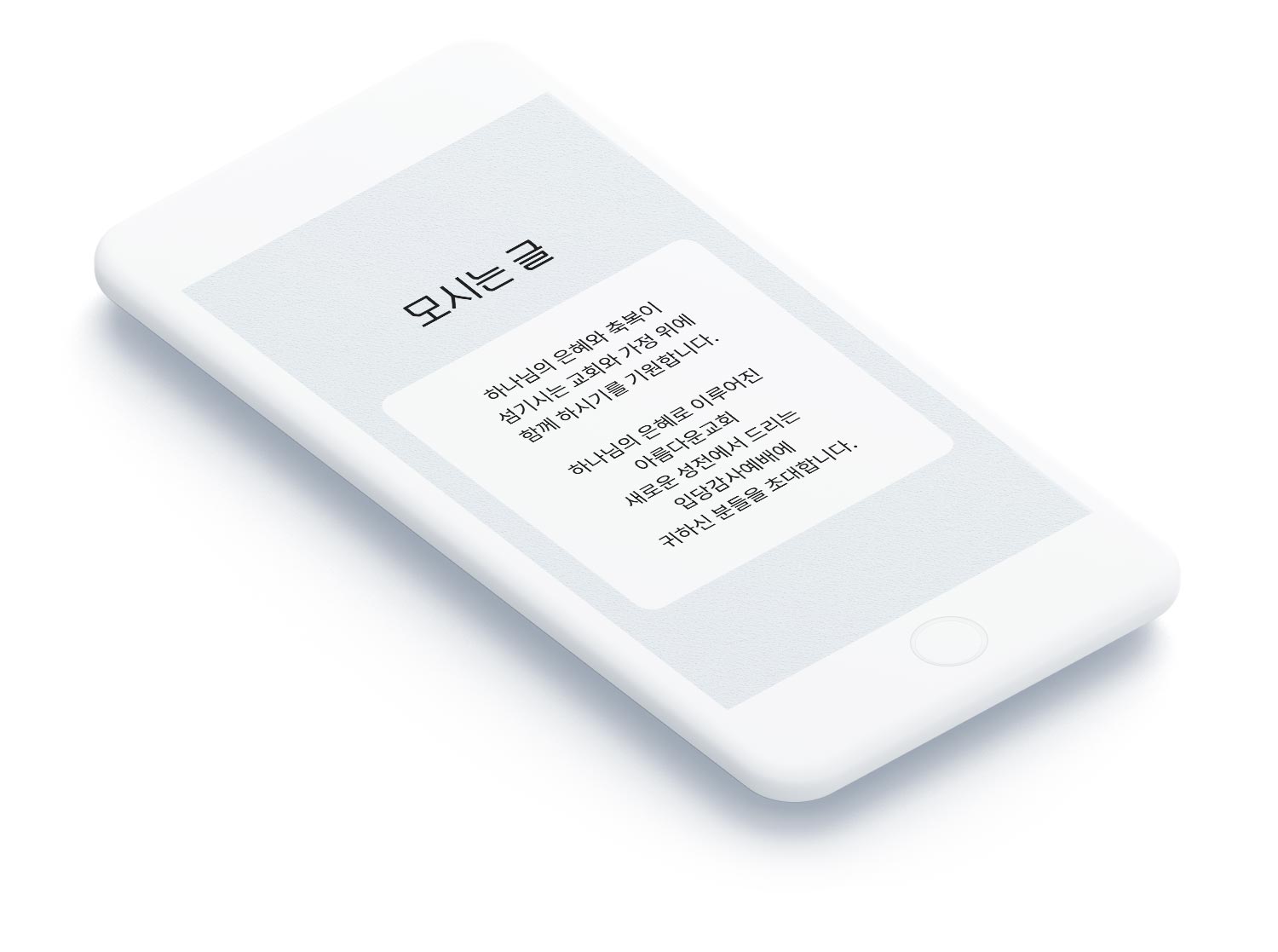 모바일 링크형 초대장은 카카오톡·문자로 링크 하나만 전송하면 앱 설치 없이 스마트폰에서 바로 열람할 수 있습니다. 예배 순서와 오시는 길 지도가 함께 담겨 있어 처음 방문하는 분도 쉽게 확인하실 수 있고, 실제 교회 사진과 갤러리를 함께 담아 새 성전의 아름다움을 미리 전달할 수 있습니다.